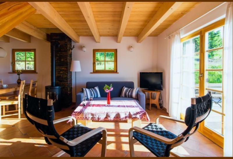Nasze dwa sześcioosobowe domki, zbudowane przez solidną niemiecką firmę, zapewniają wygodę i komfort. Każdy z nich składa się z salonu z aneksem kuchennym, łazienki oraz dwóch sypialni dwuosobowych. Dodatkowo w salonie znajdują się dwa miejsca noclegowe.