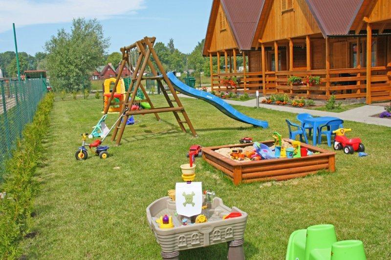 – Duży plac zabaw widoczny z tarasu każdego domku