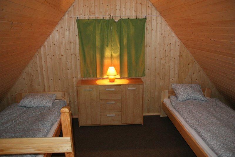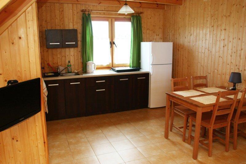 Zapraszamy do naszych komfortowych, dwupoziomowych domków drewnianych, idealnych dla 6 osób. Każdy z domków ma powierzchnię 75 m² i zadaszony taras o powierzchni 12 m². W domkach znajdziecie wszystko, co potrzebne do udanego wypoczynku: