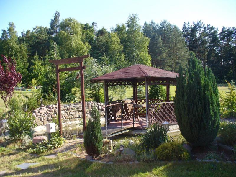 Cała posesja jest ogrodzona. Na jej terenie znajduje się oczko wode, miejsce do grillowania i wiele więcej …