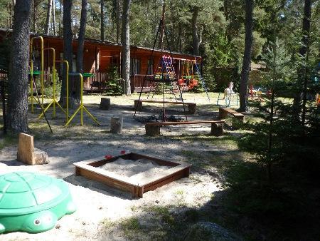 Nasze domki znajdują się na skraju lasu, co gwarantuje spokój i relaks. Teren ośrodka jest ogrodzony i wyposażony w plac zabaw oraz miejsca parkingowe. Dzięki przewadze rodzin z dziećmi, panuje tu miła, rodzinna atmosfera. W trosce o komfort wszystkich gości, nie przyjmujemy zwierząt.