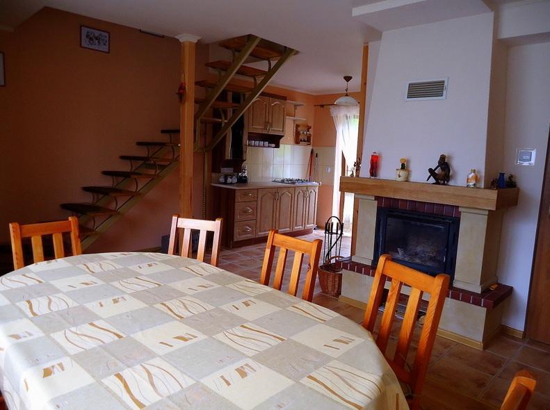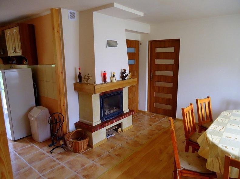 – w pełni wyposażona kuchnia otwarta na salon z tradycyjnym kominkiem,