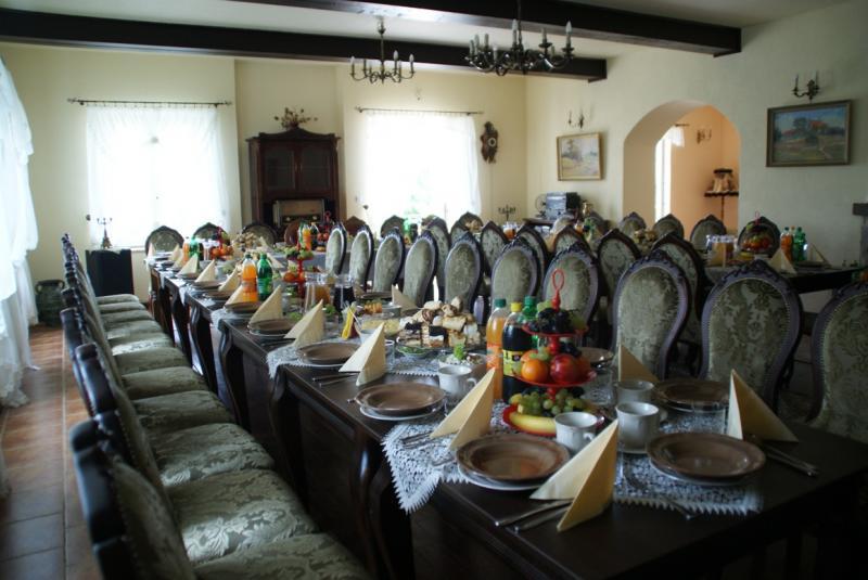 Na parterze dworu znajduje się restauracja z trzema niezależnymi salami: