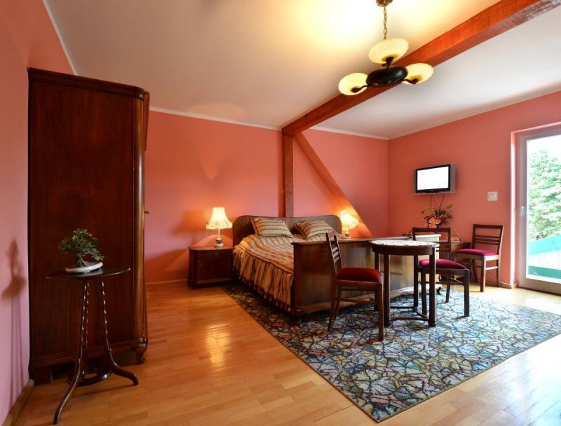 Nasz dom to idealne miejsce na wypoczynek. Posiadamy przestronny salon o powierzchni 120 m² z kuchnią wiejską i kominkiem, gdzie przy wspólnym stole może zasiąść aż 20 osób. Oferujemy 14 miejsc noclegowych w 4 pokojach 2-, 3- i 4-osobowych, wyposażonych w radio, telewizor oraz łazienki. Zapewniamy również całodzienne wyżywienie i dostęp do sprzętu turystycznego.