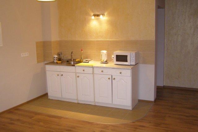– Ogólnodostępny aneks kuchenny wyposażony w ekspres ciśnieniowy do kawy, sztućce, naczynia, kuchenkę mikrofalową i czajnik,