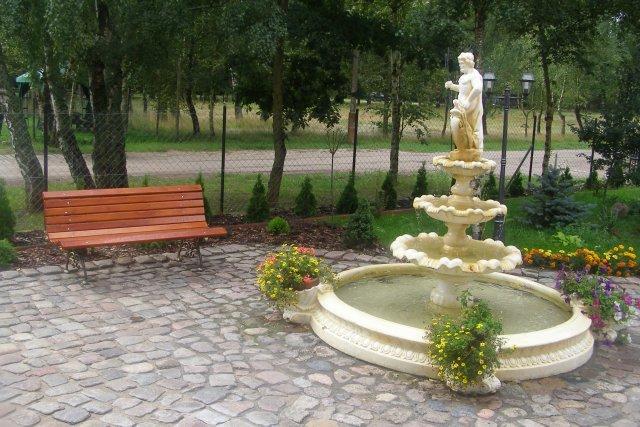 – Zadaszoną kuchnię letnią, stoły piknikowe i fontannę z Posejdonem,