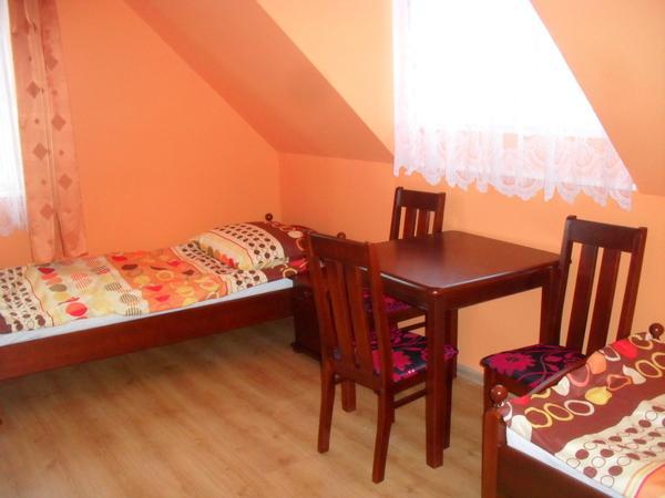 W naszej ofercie znajdziesz różnorodne pokoje, które pomieszczą 2, 3 lub 4 osoby. Dodatkowo, do Twojej dyspozycji oddajemy ogólnodostępną kuchnię, przytulną jadalnię oraz przestronny salon, w którym możesz odpocząć i spędzić miłe chwile. Nie musisz się martwić o parking, ponieważ mamy dla Ciebie wydzielone miejsce. Dla najmłodszych gości przygotowaliśmy miejsce zabaw, gdzie dzieci będą mogły się bawić i spędzać czas aktywnie. Jeśli potrzebujesz przestrzeni do organizacji spotkań biznesowych, mamy dla Ciebie specjalną salę konferencyjną. Oczywiście, w naszym dworze masz pełną dostępność mediów, abyś mógł korzystać z nich bez ograniczeń.