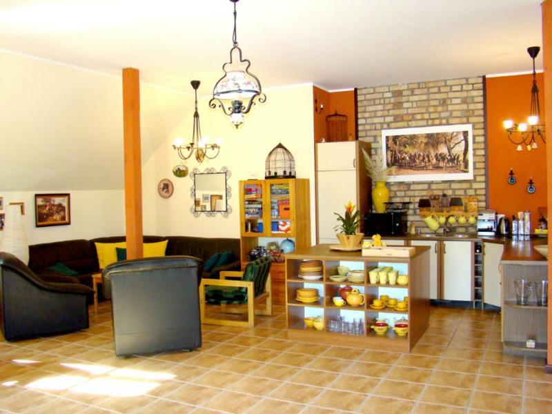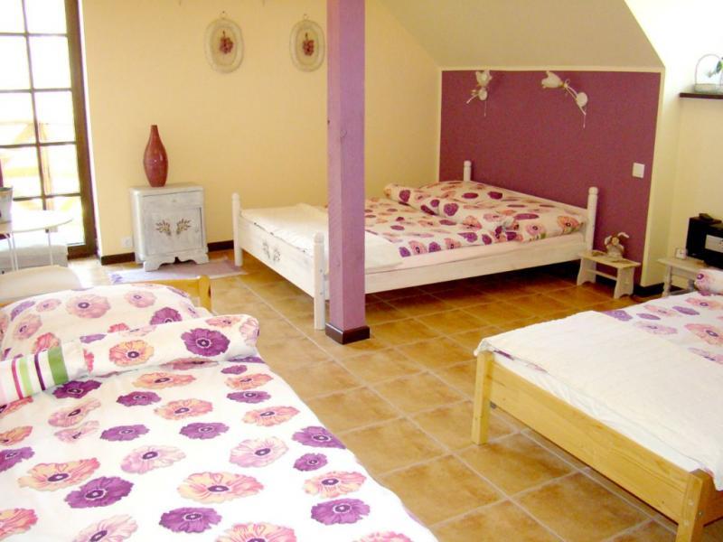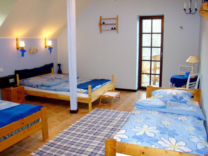 Nasz dworek to oaza ciszy i spokoju, z dala od zgiełku, z jedynym sąsiadem w okolicy. W przedwojennym budynku na piętrze przygotowaliśmy dla Państwa 4 komfortowe pokoje z łazienkami, które łącznie mogą pomieścić do 14 osób. Do dyspozycji gości jest również przytulny salonik z aneksem kuchennym, idealny do wspólnego spędzania czasu.