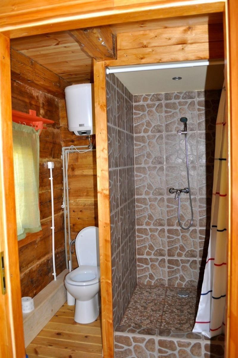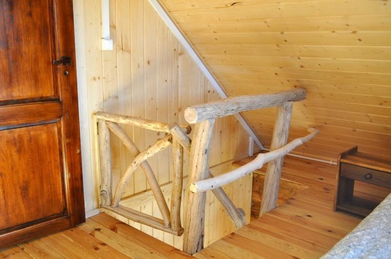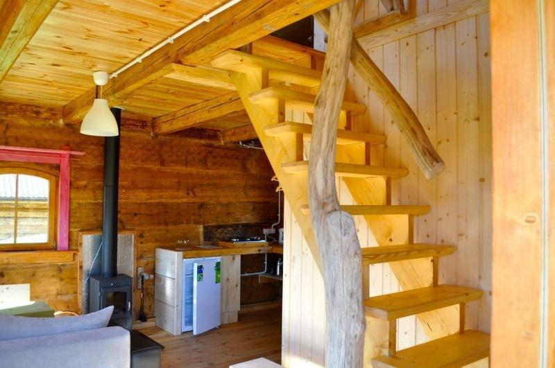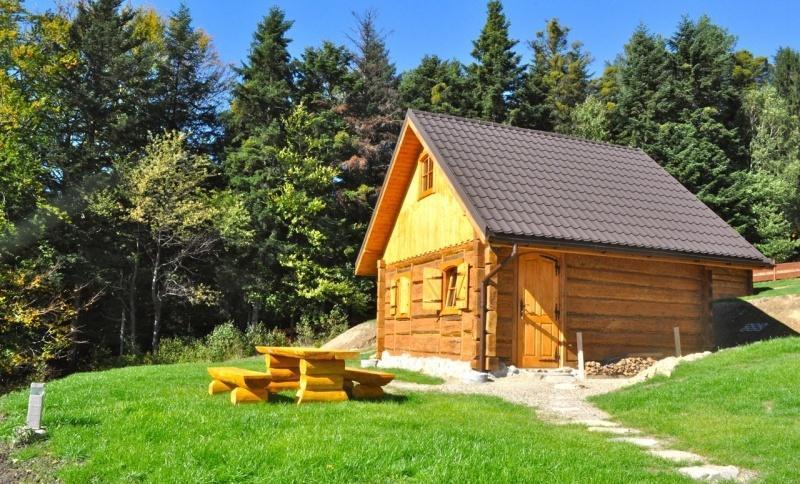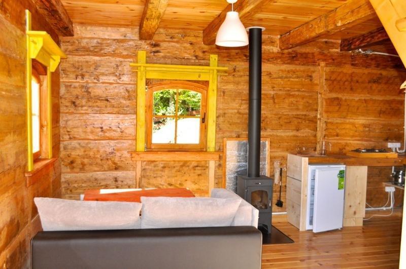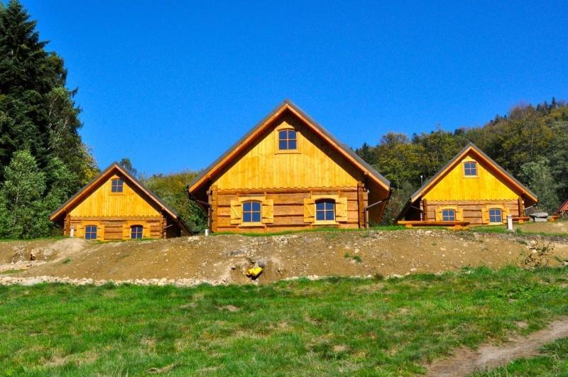 – 3 całoroczne domki z bali drewnianych, każdy z kominkiem, kuchnią, lodówką i łazienką, dla 4-5 osób