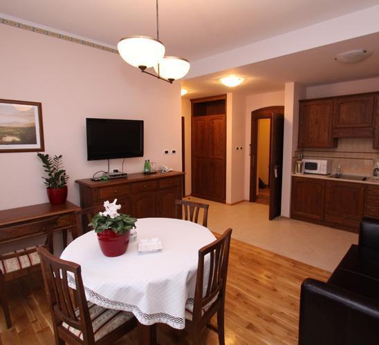 – Aneks kuchenny (lodówka, kuchenka z elektryczną płytą ceramiczną, czajnik bezprzewodowy, ekspres do kawy, porcelana i niezbędne sprzęty kuchenne)