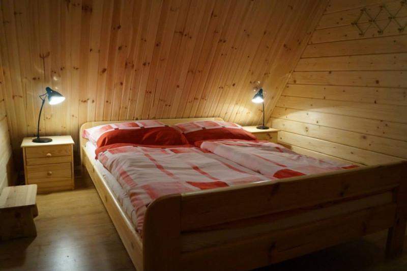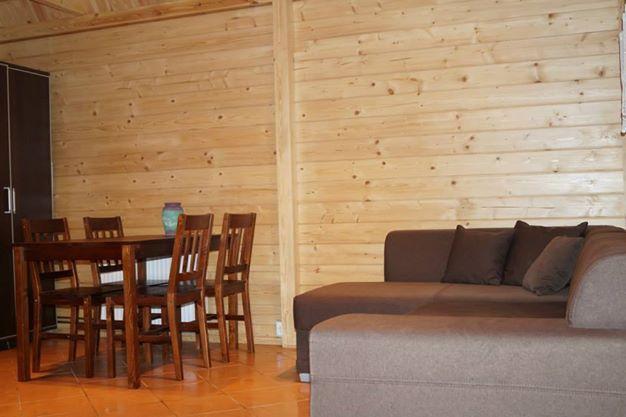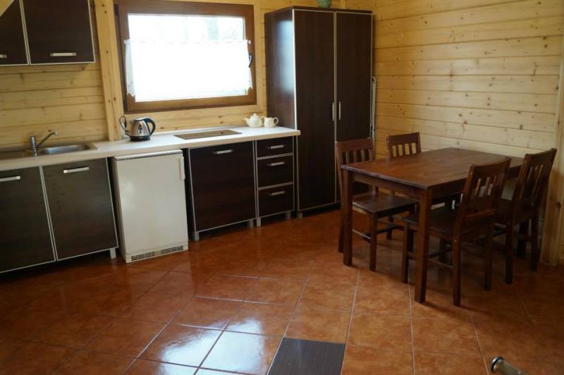 Domki letniskowe są w pełni wyposażone, aby zapewnić komfortowy pobyt. Na piętrze znajdują się dwie sypialnie z pościelą i szafkami nocnymi. W salonie jest rozkładana sofa z pościelą. Kuchnia zawiera:
