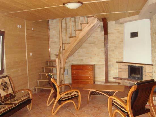 Pierwszy domek o powierzchni 90 m² może pomieścić 6 osób, a drugi domek o powierzchni 70 m² jest przeznaczony dla 5 osób. Każdy z domów posiada: