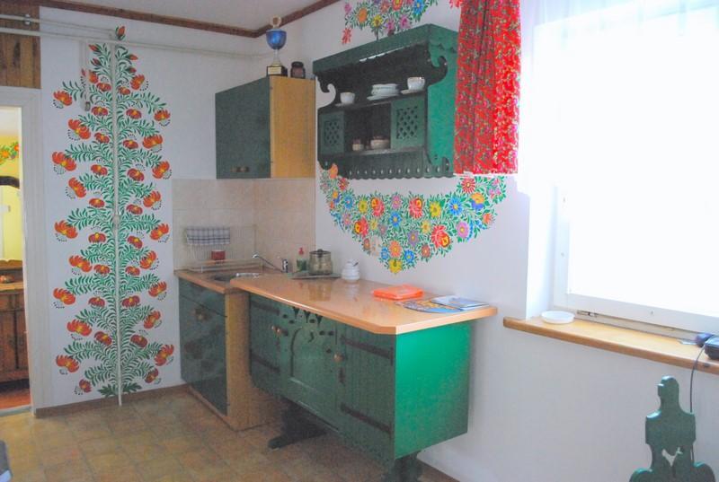 Zapraszamy do magicznego Zalipia, gdzie czeka na Państwa urokliwy, wolnostojący dom jednorodzinny, ozdobiony tradycyjnymi, ręcznie malowanymi motywami kwiatowymi. Nasz dom to idealne miejsce na wypoczynek dla maksymalnie 5 osób. Oferujemy dwa komfortowe pokoje, każdy z własną łazienką i osobnym wejściem. Dla większej wygody, pokoje można połączyć, tworząc przestronną powierzchnię mieszkalną. Kuchnia jest wyposażona we wszystkie niezbędne sprzęty, co pozwala na samodzielne przygotowywanie posiłków.