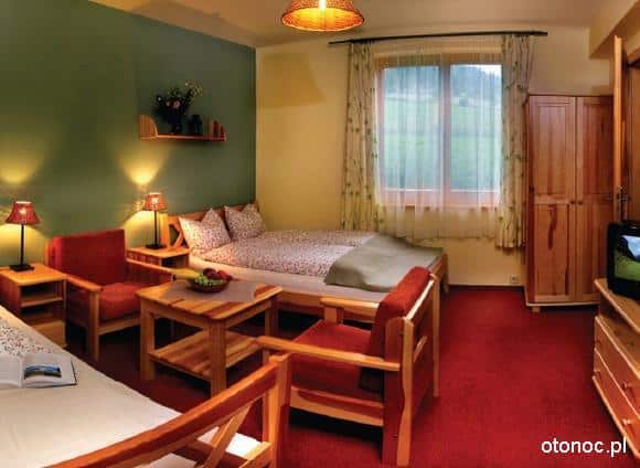 Nasza oferta noclegowa obejmuje 15 komfortowych pokoi z łazienkami, telewizją i Wi-Fi. Pokoje są dwu-, trzy- i czteroosobowe. Do dyspozycji gości oddajemy także: