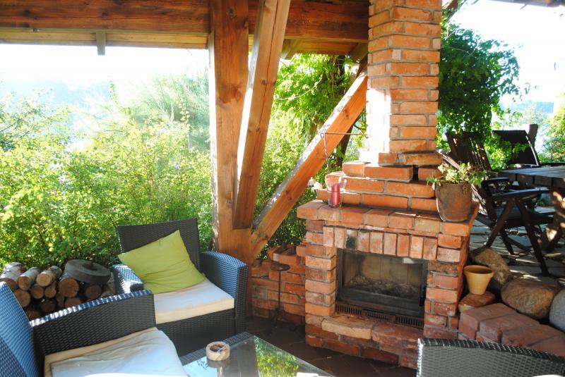 Zapraszamy do naszego pensjonatu, który mieści się w starym, z pietyzmem odrestaurowanym gospodarstwie. Wnętrza zachowują klimat dawnych czasów, co dodaje miejscu wyjątkowego uroku. Na parterze znajduje się sala restauracyjna z kominkiem i barem oraz ogród zimowy z widokiem na jezioro. Na piętrze czekają stylowe pokoje z łazienkami i tarasami widokowymi. Budynki usytuowane są na skarpie, co gwarantuje przepiękne widoki na jezioro.
