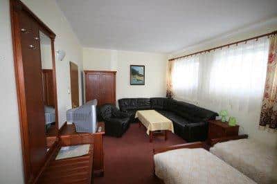 – W pełni wyposażone pokoje: TV, lodówka, czajnik, zestaw kawowy