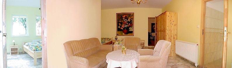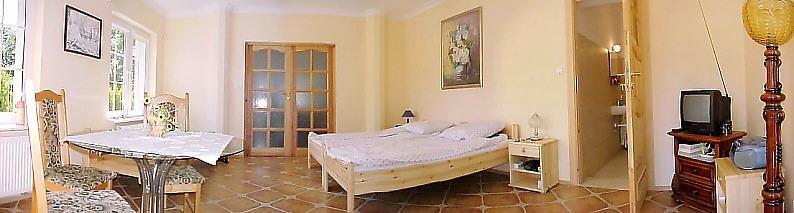 Oferujemy komfortowe pokoje noclegowe z prywatnymi łazienkami, wyposażone w telewizory. Dla większych rodzin przygotowaliśmy przestronne pokoje trzy- i czteroosobowe. Ponadto, do dyspozycji gości jest apartament oraz w pełni wyposażony domek.