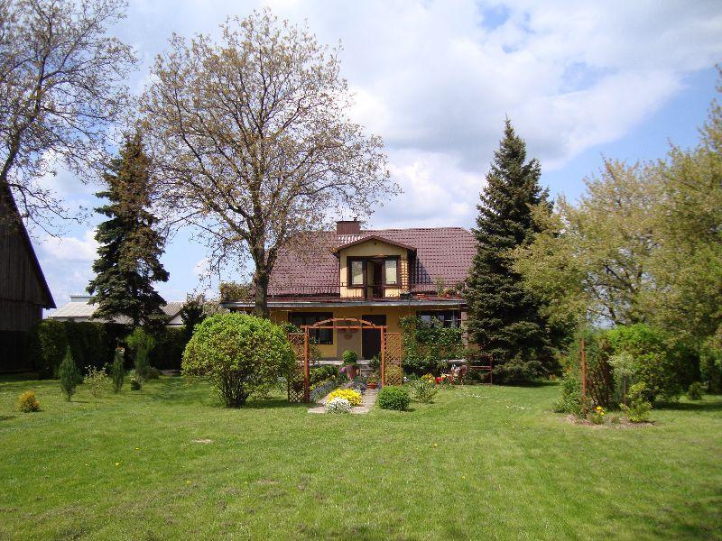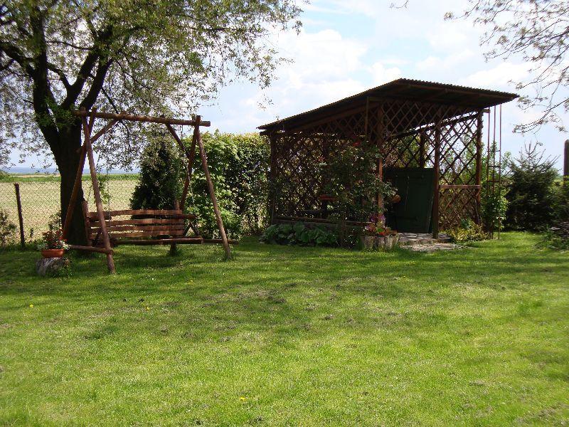 Za domem rozpościera się przepiękny ogród, pełen różnorodnej roślinności. Można tu znaleźć altankę, idealną na relaksujące chwile, miejsce do rozpalenia ogniska i przygotowania pysznych potraw na grillu, a także plac zabaw dla dzieci, hamak, ręcznie wykonaną drewnianą huśtawkę oraz boisko do siatkówki i stół do tenisa. Na naszej posesji znajduje się również zabytkowa stodoła, która ma ponad 100 lat i została zbudowana bez użycia gwoździ.