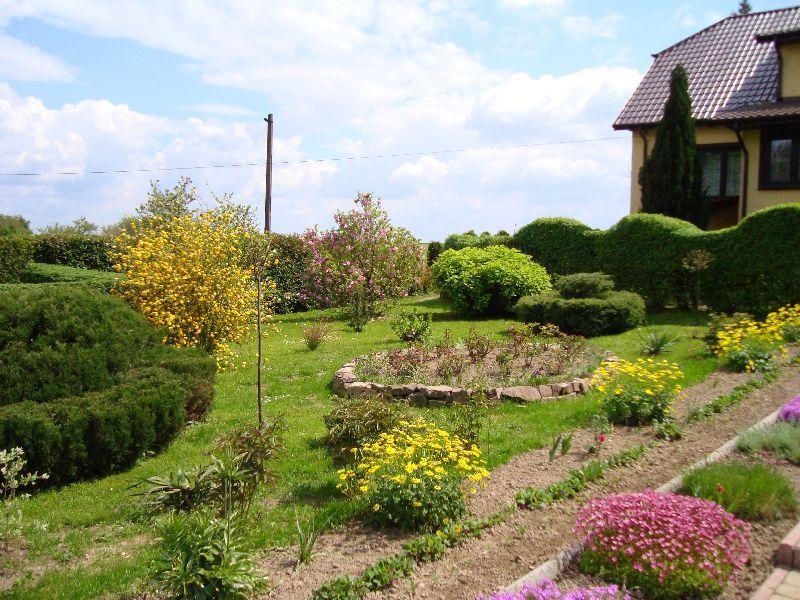 Nasz dom jest otoczony przepięknym ogrodem, który zachwyca swoim urozmaiceniem. Na przestronnym tarasie znajduje się wydzielony kącik, idealny do spożywania posiłków, z którego można podziwiać widok na piękny ogród oraz plac zabaw dla dzieci.