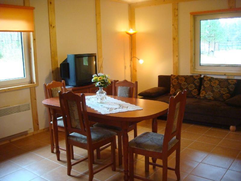Dodatkowo, w osobnym budynku znajduje się sala bilardowa z kominkiem, kuchnią i łazienką. Goście mogą korzystać z piekarnika elektrycznego, ciśnieniowego ekspresu do kawy i pralki.