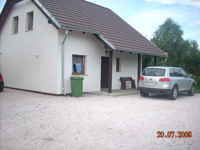 Dla dzieci przygotowaliśmy także specjalne miejsce zabaw, gdzie mogą się wygłupiać i cieszyć się czasem spędzonym na świeżym powietrzu. Na terenie posesji znajduje się również wydzielone miejsce parkingowe, aby nasi goście mogli bezpiecznie zaparkować swoje pojazdy.