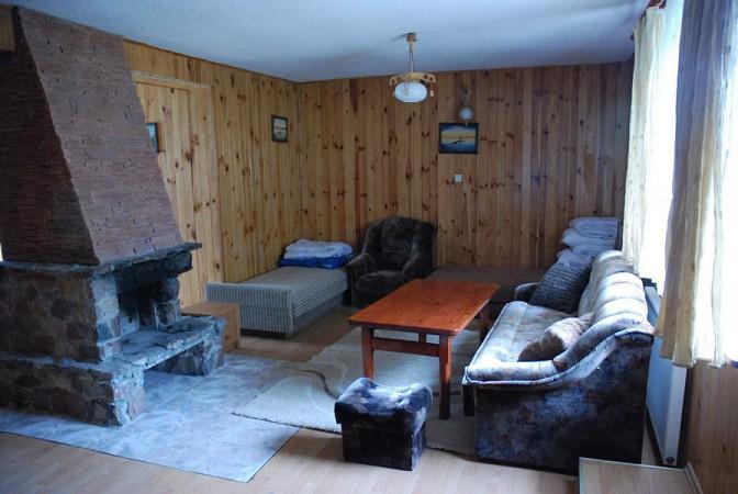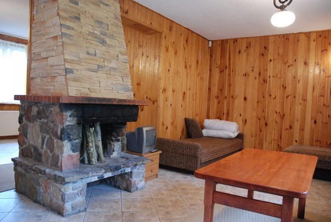 – Przytulny salon z kominkiem, telewizorem i wygodnymi meblami,