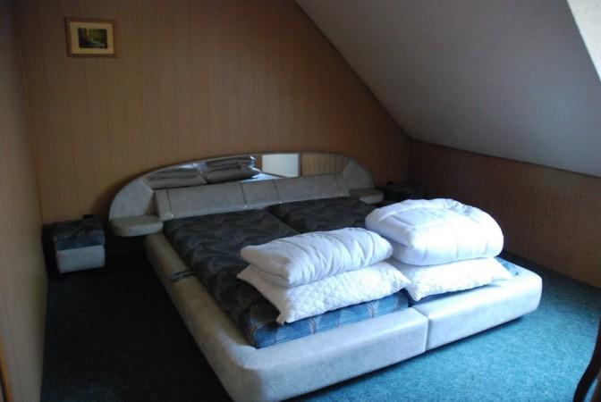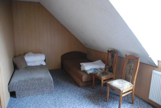 – Na piętrze dwie sypialnie: jedna z dużym łożem małżeńskim, druga z dwoma tapczanikami,
