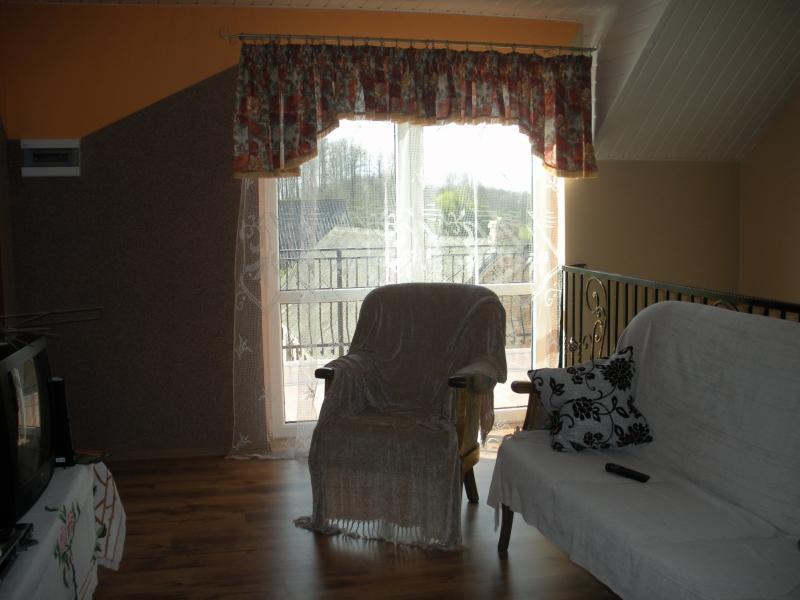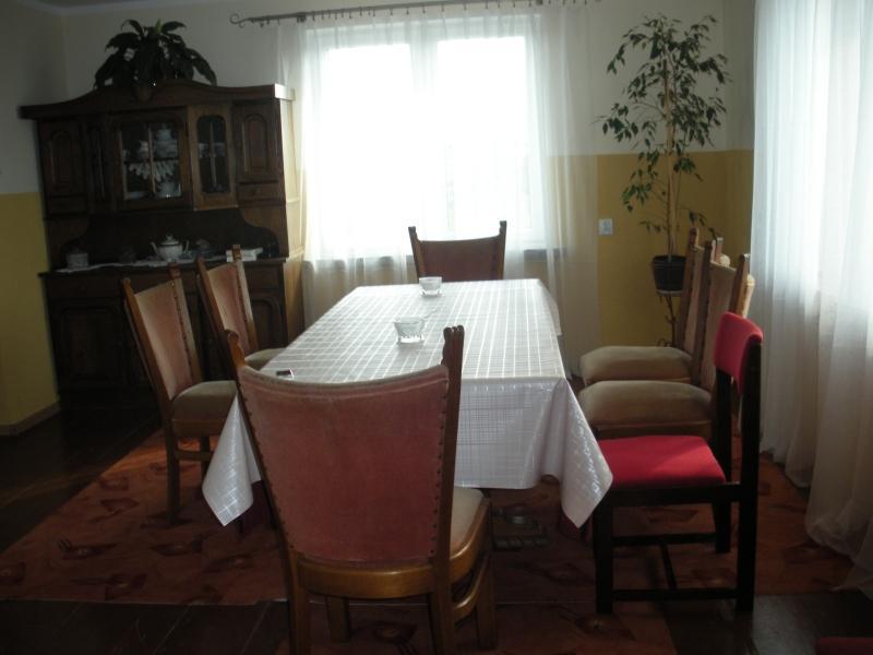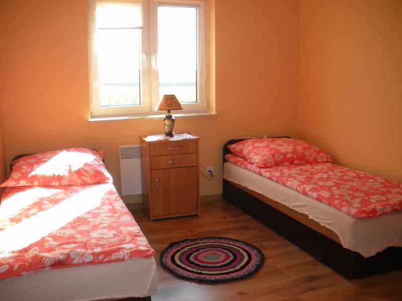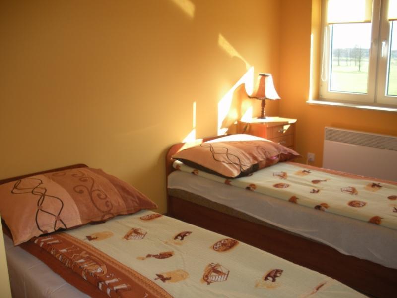 Posiadamy nowy piętrowy dom przygotowany na 13 miejsc noclegowych. Na parterze znajduje się kuchnia z jadalnią (z pełnym wyposażeniem) oraz jeden pokój 4-osobowy z łazienką (pokój rodzinny). Na piętrze są trzy pokoje 2-osobowe oraz jeden pokój 3-osobowy, wszystkie z łazienką.