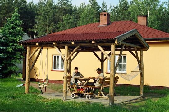 Nasz teren o powierzchni ponad 7 hektarów kryje w sobie komfortowy drewniany dworek oraz domek murowany. Dworek, mogący pomieścić do 7 osób, wyposażony jest w dwie sypialnie, salon, kuchnię i łazienkę z elektrycznym ogrzewaniem podłogowym. Ciepło w chłodniejsze dni zapewnia kominek wolnostojący. Domek murowany, z kolei, oferuje dwa pokoje, kuchnię i łazienkę, a także piecyk wolnostojący, mieszcząc do 6 osób.