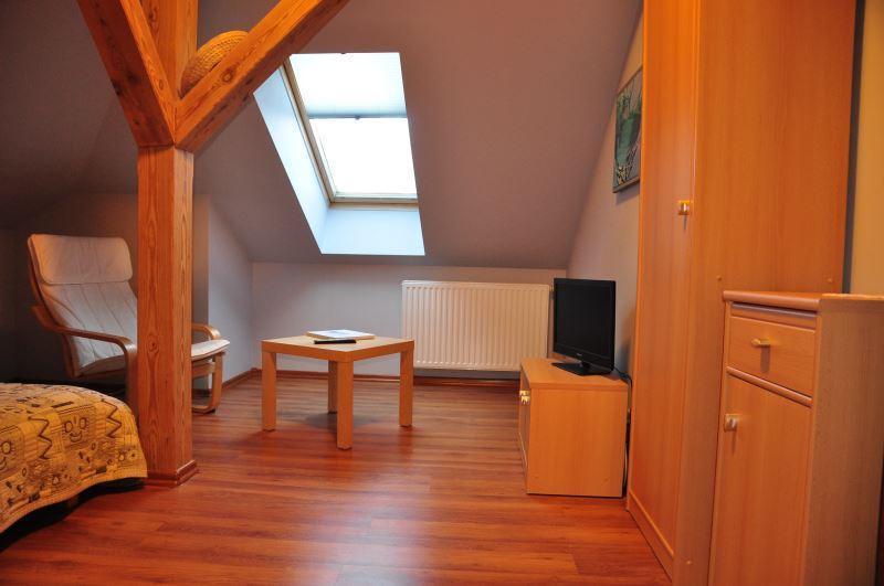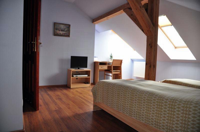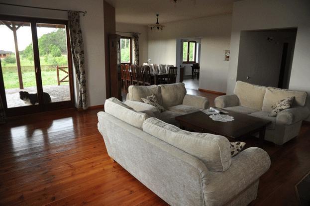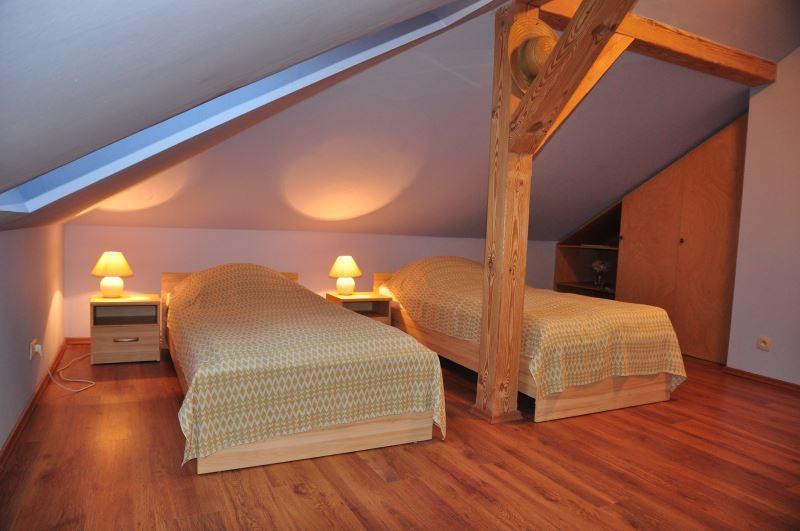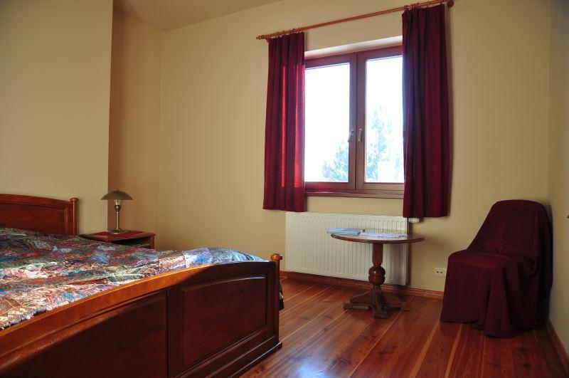 Oferujemy komfortowe zakwaterowanie w czterech pokojach dwu-, trzy- i czteroosobowych, każdy z własną łazienką i zapleczem socjalnym. Do dyspozycji gości jest jadalnia, taras oraz salon z kominkiem. Łącznie możemy przyjąć 13 osób, z możliwością dodania 3 dostawek. Współpracujemy również z sąsiednią agroturystyką, co pozwala nam zakwaterować do 24 osób.