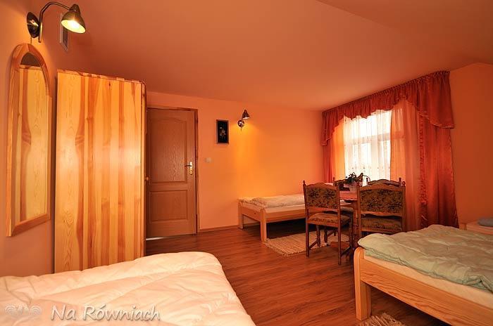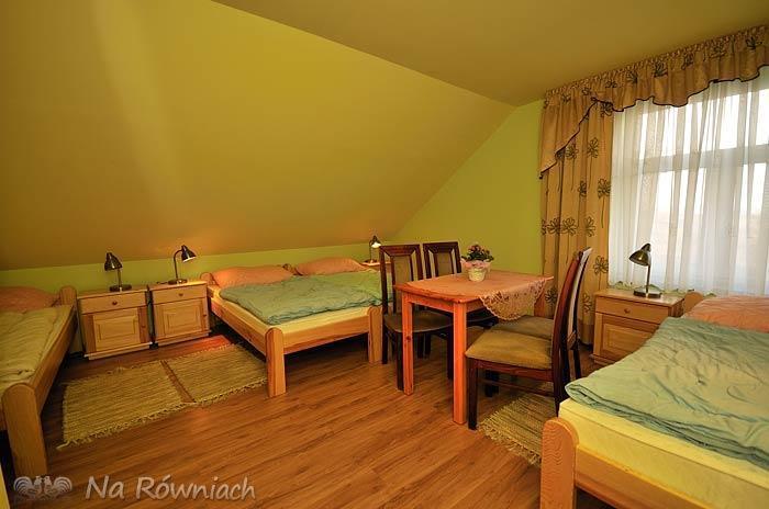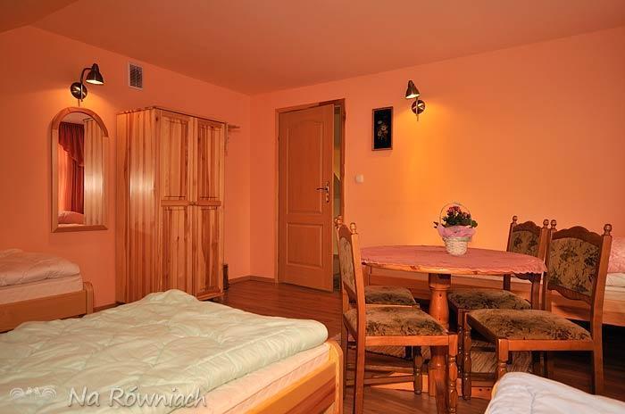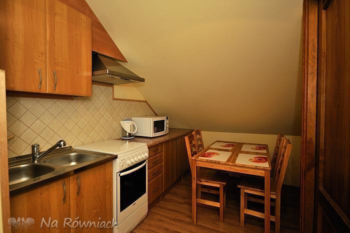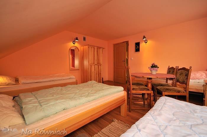 Na poddaszu do dyspozycji Gości mamy 2 pokoje 4-osobowe, aneks kuchenny z pełnym wyposażeniem (kuchenka mikrofalowa, lodówka z zamrażalnikiem) oraz pokój dzienny z TV-SAT. Pokoje na poddaszu posiadają wspólną, dużą łazienkę. Istnieje możliwość dostosowania ilości łóżek w pokojach (do uzgodnienia).