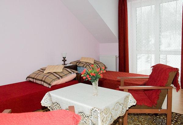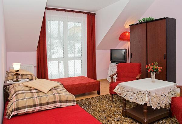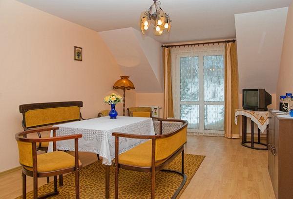 Dom jest nowy, murowany i przytulnie ciepły zimą. Wokół domu znajduje się ogród z krzewami i drzewami iglastymi, który w lecie staje się idealnym miejscem do relaksu dzięki rozstawionemu parasolowi i grillowi. Cisza i spokój panujące na terenie gospodarstwa sprzyjają pełnemu wypoczynkowi. Z okien, balkonów i ogrodu roztaczają się panoramiczne widoki na Wieliczkę oraz odległy Kraków.