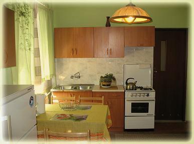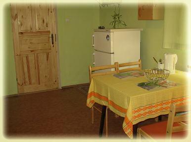 – W pełni wyposażoną kuchnię (kuchenka gazowa, lodówka),
