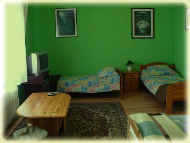 – Trzy pokoje: dwa czteroosobowe i jeden dwuosobowy (łącznie 10 miejsc noclegowych, z możliwością dostawienia dwóch dodatkowych łóżek),
