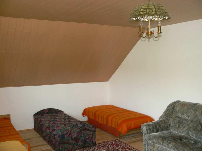 Wszystkie pokoje wyposażone są w łóżka jedno- i dwuosobowe, a łazienka znajduje się na korytarzu. Na terenie gospodarstwa jest dużo miejsca, gdzie można rozbić namiot lub zaparkować samochód. Dla miłośników wieczornych ognisk i grillowania przygotowaliśmy specjalne miejsca do biesiadowania na świeżym powietrzu.
