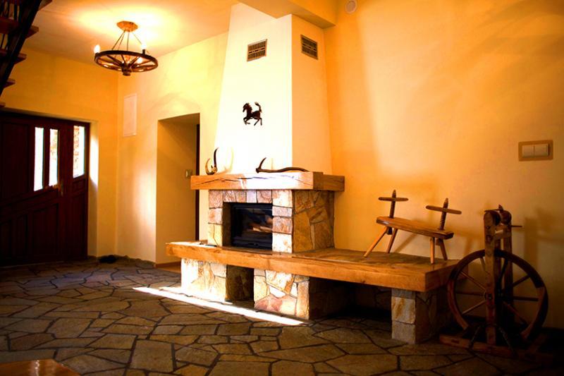 Na parterze budynku znajduje się duży salon z kominkiem, telewizorem oraz kuchnią i łazienką. Ten przestronny salon może być wykorzystany do organizacji imprez okolicznościowych dla około 25 osób.