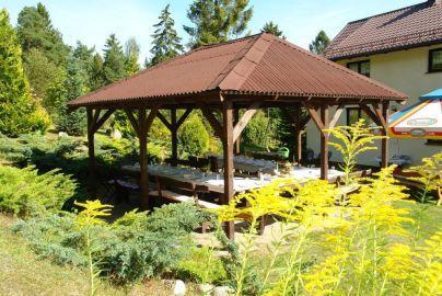 Dodatkowo oferujemy wynajem letniskowego domku, który jest w pełni wyposażony i posiada kuchnię, łazienkę z prysznicem, sypialnię oraz salon. Cena za dobę wynosi 120 zł, plus opłaty za zużycie energii elektrycznej.