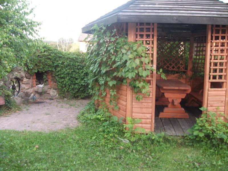Otoczenie domu pełne jest zieleni, tworząc przyjemną i relaksującą atmosferę. Goście mogą odpocząć w kąciku ogrodowym, a dzieci mają do dyspozycji plac zabaw. Na terenie gospodarstwa znajduje się również miejsce do grillowania oraz ognisko, idealne na wieczorne biesiady. Dla miłośników wędkowania przygotowaliśmy staw z rybami, gdzie można cieszyć się ciszą i spokojem.