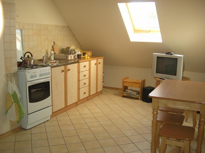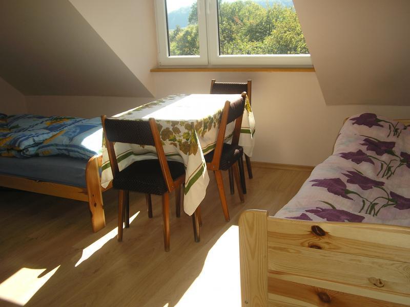 Oferujemy komfortowy nocleg w pięciu przestronnych pokojach dwu- i trzyosobowych, każdy z własnym aneksem kuchennym. Na poddaszu znajdują się dodatkowe pokoje trzy- i czteroosobowe, również z aneksem kuchennym, telewizorem i łazienką. Goście mają do dyspozycji oddzielne wejście na poddasze, zapewniające prywatność.