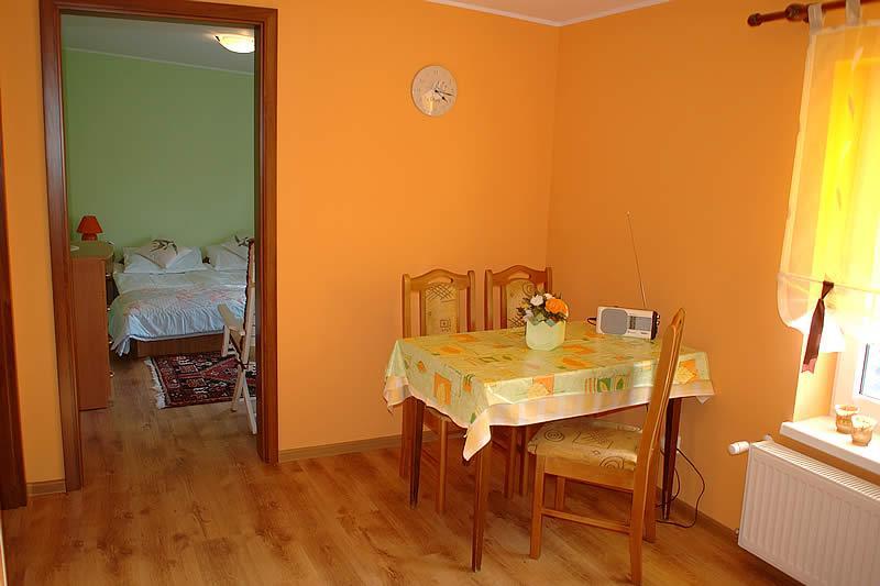 – **Pokoje 2-osobowe**: Dwa przytulne pokoje, każdy z własną łazienką i telewizorem. Jeden z pokoi wyposażony jest dodatkowo w aneks kuchenny.