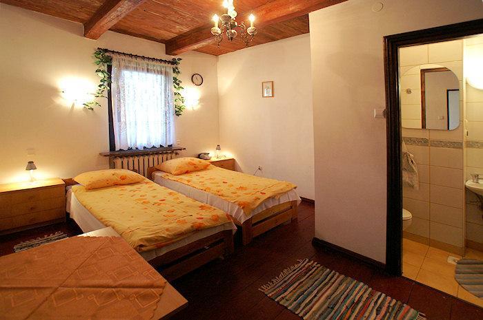 – **Zakwaterowanie**: Drewniany dom wiejski z piecem chlebowym oferuje pokoje dla gości, w tym 4-osobowy z łazienką, dwa pokoje 2-osobowe, mieszkanie 2-pokojowe (2+1) z łazienką oraz dwupoziomowe mieszkanie dla 6 osób.