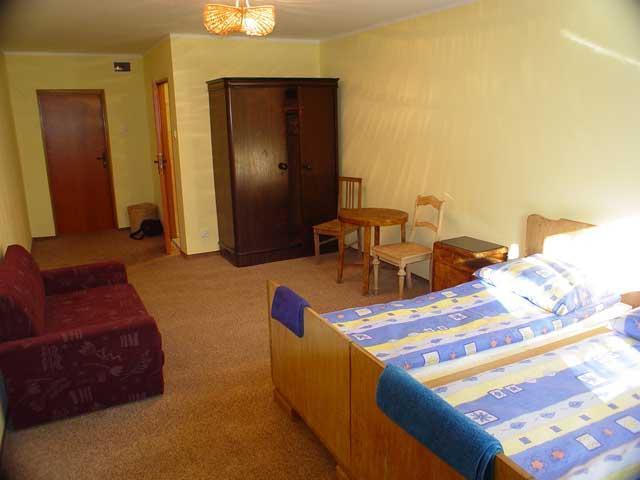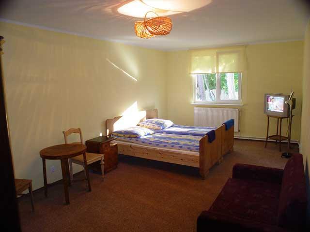 Posiadamy bogatą bazę noclegową, która może pomieścić aż 60 osób. Naszym gościom oferujemy komfortowe pokoje oraz domki o powierzchni od 23 do 25 metrów kwadratowych. Każde z nich jest wyposażone w telewizor i lodówkę. Wszystkie pokoje, zarówno dwu- jak i czteroosobowe, oraz apartamenty, posiadają prywatne łazienki z prysznicem. Dodatkowo, zapewniamy naszym gościom strzeżony parking, plac zabaw dla dzieci, jacuzzi oraz możliwość skorzystania z usług masażysty.