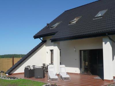 – Dla dzieci: brodzik, huśtawka, trampolina (1m), piłki, duża piaskownica z zabawkami, drewniany domek z drabinką i zjeżdżalnią.