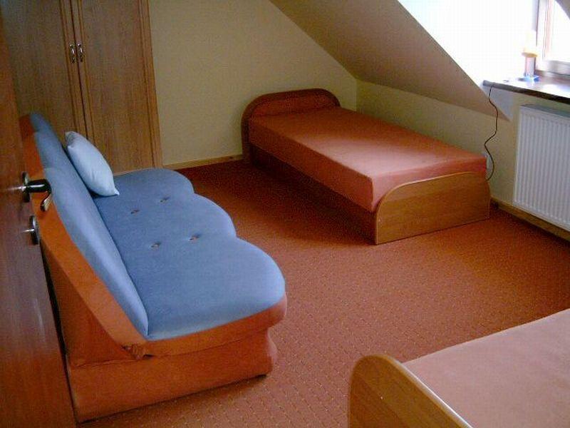 – Na piętrze: 7 pokoi (6 trzyosobowych, 1 czteroosobowy), 2 duże łazienki, klubik z telewizją satelitarną, przestronny hol z aneksem kuchennym