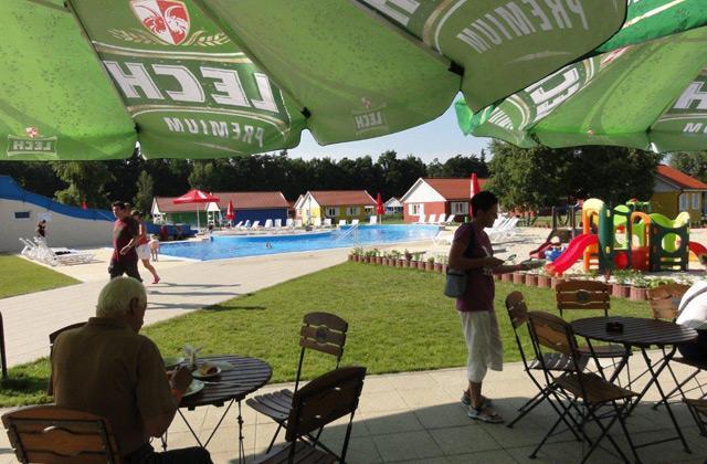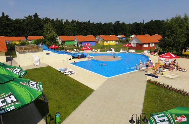 Na terenie ośrodka znajduje się duży, podgrzewany basen zewnętrzny, wyposażony w zjeżdżalnie i liczne atrakcje wodne, dostępny wyłącznie dla naszych gości. To doskonałe miejsce na zabawę i odpoczynek dla całej rodziny.