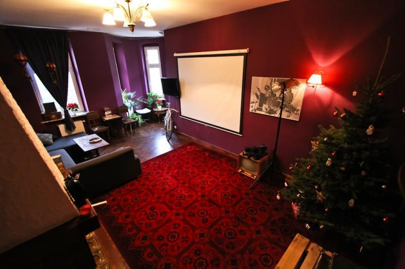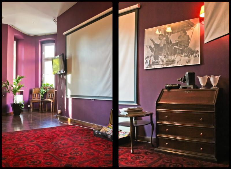 – Relaks: Sala chill-outowa z wygodnymi kanapami, kominkiem i biblioteką tematyczną o filmach. Organizujemy wieczorne seanse filmowe.