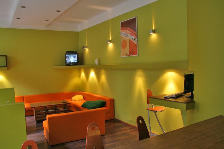 Wspólna przestrzeń, jaką jest nasz common room, to miejsce spotkań i relaksu. Znajduje się tu telewizor z bogatą ofertą kanałów, odtwarzacz DVD, gitara do wspólnego muzykowania, a także aneks kuchenny, w którym można przygotować posiłki. Oferujemy również darmową kawę i herbatę, a czasem recepcja przygotowuje dla gości poczęstunek.