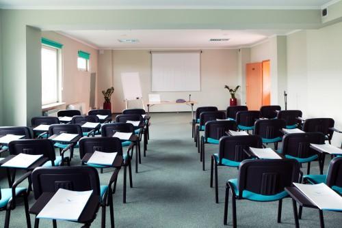 – Wyposażenie sal: projektory, ekrany, flipcharty, nagłośnienie