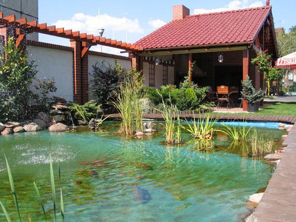 Goście preferujący wypoczynek na świeżym powietrzu mogą skorzystać z letniego ogrodu z oczkiem wodnym i domkiem grillowym.