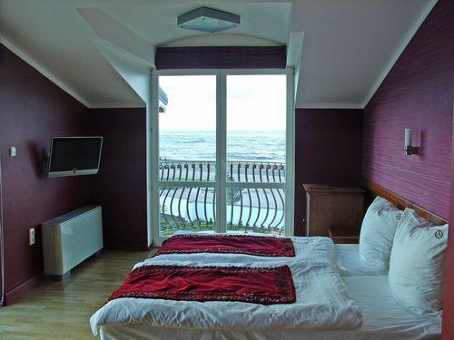 Oferujemy Państwu komfortowe pokoje 2 i 3 osobowe. Pokoje są klimatyzowane i wyposażone w wygodne meble, telewizory LCD, internet, mini bar, telefon oraz sejf. Dodatkowo, pokoje posiadają balkony oraz tarasy z widokiem na morze i park zdrojowy.